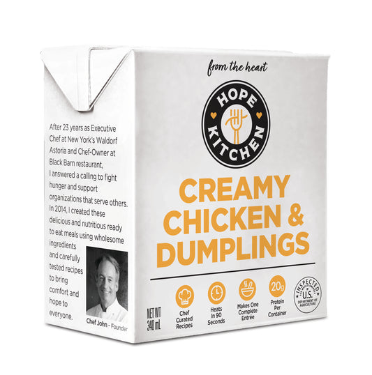 Hope Kitchen meals are chef-developed to be a delicious, nutritious, ready-to-eat shelf stable meal solution. Our high protein meals can be warmed in a microwave or skillet and are even tasty eaten directly out of the durable and portable package - so durable in fact, that you can store them for up to 2 years.
